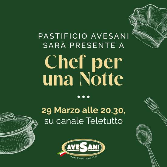 Siamo lieti di annunciare la nostra partecipazione a Chef per una Notte, il programma dedicato alla cucina e alle eccellenze gastronomiche, in onda sabato 29 marzo alle 20:30 su Canale Teletutto.